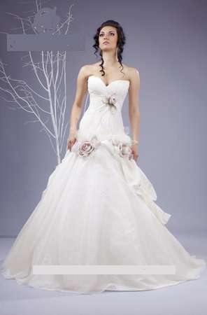 Описание:В этой модели царит феерия грации. Удлинённый лиф, выполнен драпировкой, украшен нежной розочкой и лентами жемчуга. Линия соединения юбки с лифом также украшена розами и фатиновыми лепестками. Юбка, расширенная донизу, выполнена ещё одним ярусом подобранным хрупкими розами. На спине глубокий вырез с грубым переплётом. В этом платье любая невеста будет великолепной и совершенной.
